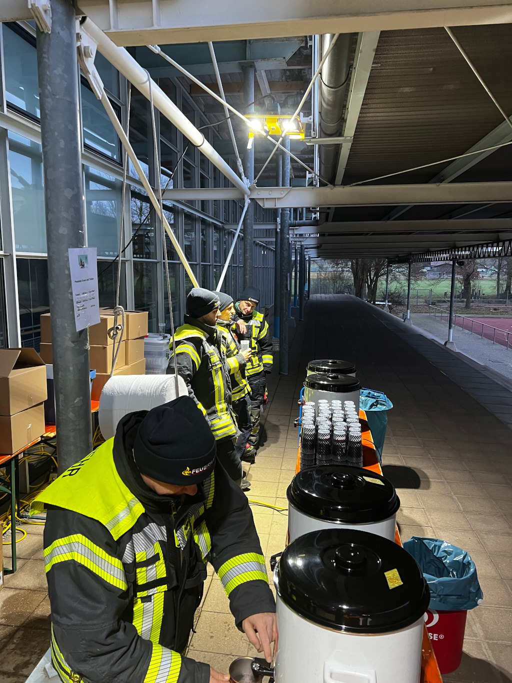 Beim Weihnachtsliedersingen im Rankbachstadion am Vorabend des Heiligen Abends, das von Martina Steinbrenner vom Verein Palliativ Care Teams organisiert wurde, unterstützte die Feuerwehr gerne wieder den Verkauf von heißen Fleischkäsbrötchen sowie Glühwein und Punsch.