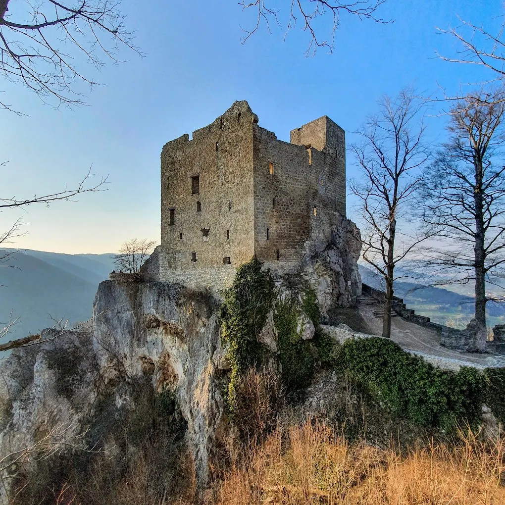 Vom Parkplatz Quickereck bei Schopfloch wandern wir auf dem Wanderweg durch herbstlichen Mischwald leicht bergab zum Rastplatz Bahnhöfle. Wir werden belohnt mit fantastischem Blick hinunter ins Neidlinger Tal und auf das Albvorland, später auf die Ruine Reussenstein, die sich imposant über den Felsen erhebt.