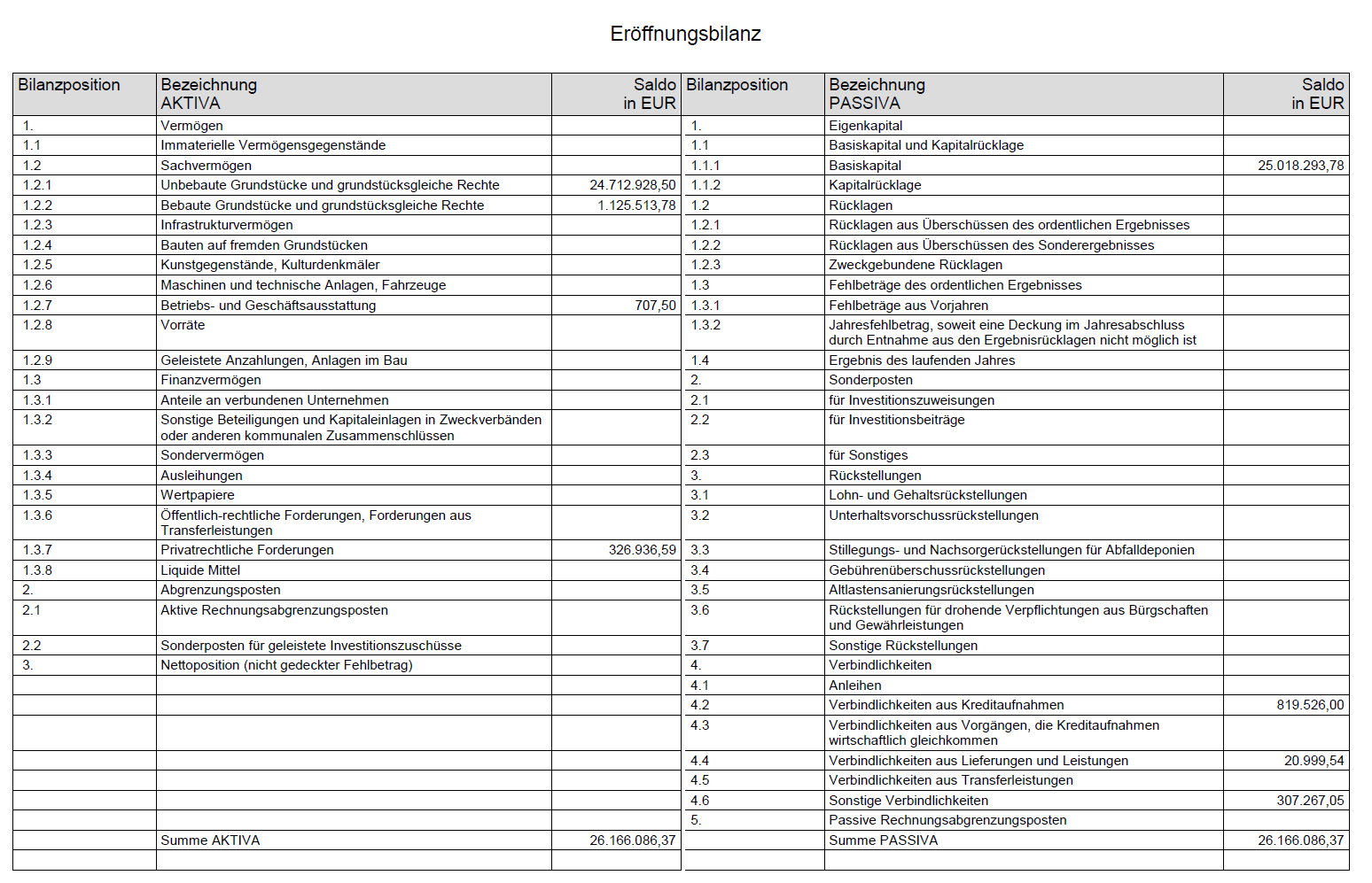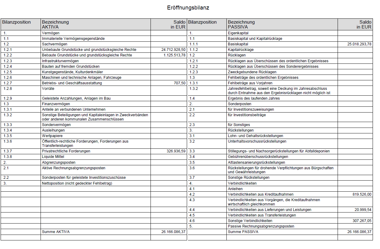 Umstieg kamerales Rechnungswesen auf das Neue Kommunale Haushalts- und Rechnungswesen (NKHR) / Eröffnungsbilanz