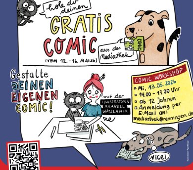 Am Mi., 13. Mai 2026 von 14-17.00 Uhr können Kinder ab 12 Jahren bei einen Comic Workshop dabei sein.