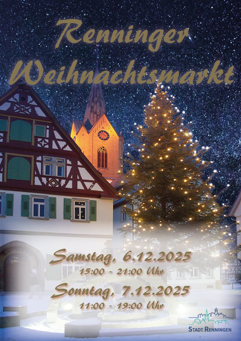 Der Renninger Weihnachtsmarkt erwartet Sie in der heimeligen Atmosphäre des vorweihnachtlich beleuchteten Kirchplatzes. Auf weihnachtliche Weise unterhalten Sie örtliche Musikvereine mit musikalischen Darbietungen.